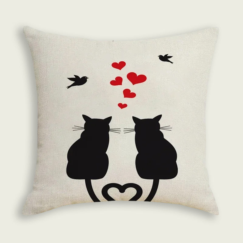 2 Cats Fall in Love Hunting Plush Pillow Case