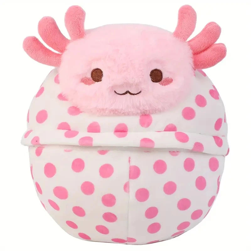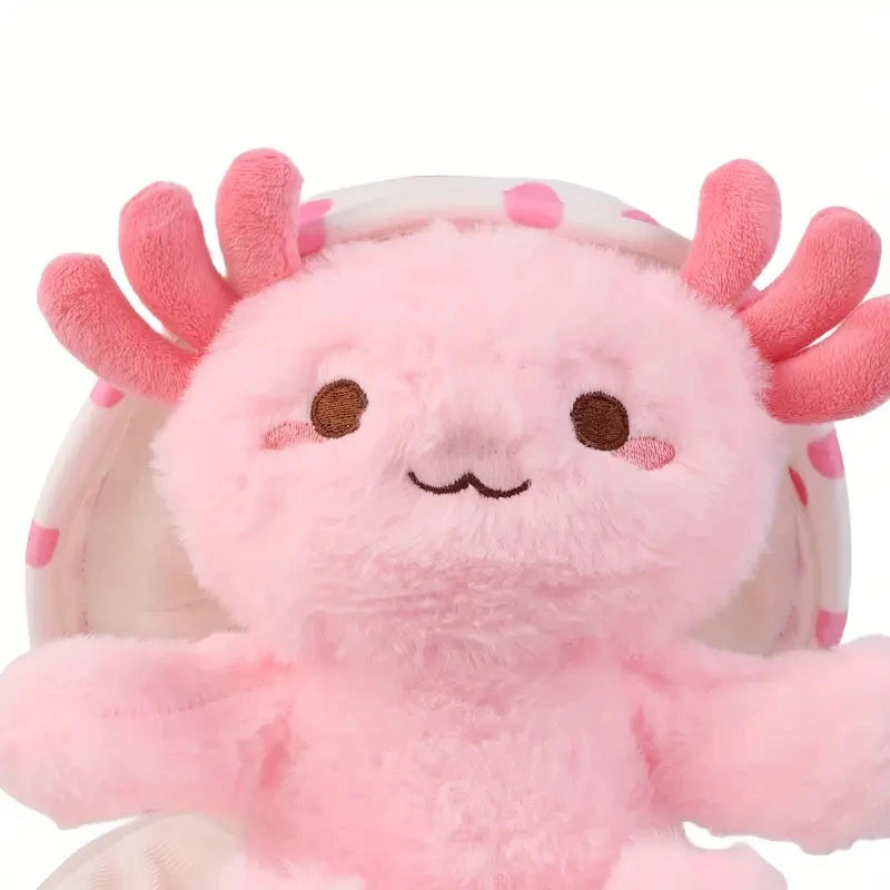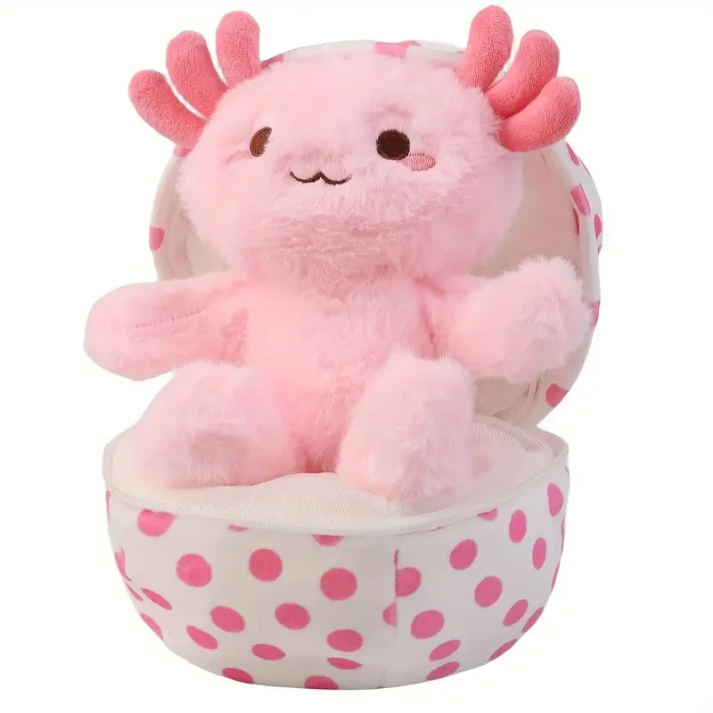 Just imagine watching a clutch of axolotl eggs hatch, taking to the water for the very first time. You don't have to imagine anymore; you can simply order our brand-new Axolotl Hatching in Egg Plushie! This squishy-soft newborn axolotl is simply tickled pink to meet you, and can't wait for you to reciprocate the feeling. Give this not-so-slippery salamander a squeeze, and see for yourself; your daily stresses will be forgotten as you delve into that famous lake in Mexico City where axolotl roam. This pink powerhouse is also an extremely strong visual statement in any space, and that goes double with its egg. Whether you want it to liven up your favorite space, give some much-needed cuddle time, or simply function as a pillow, this little lizard is your perfect companion! 🦎