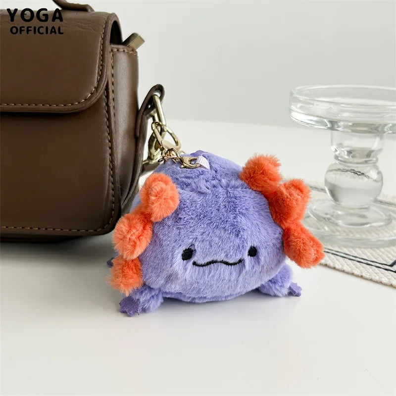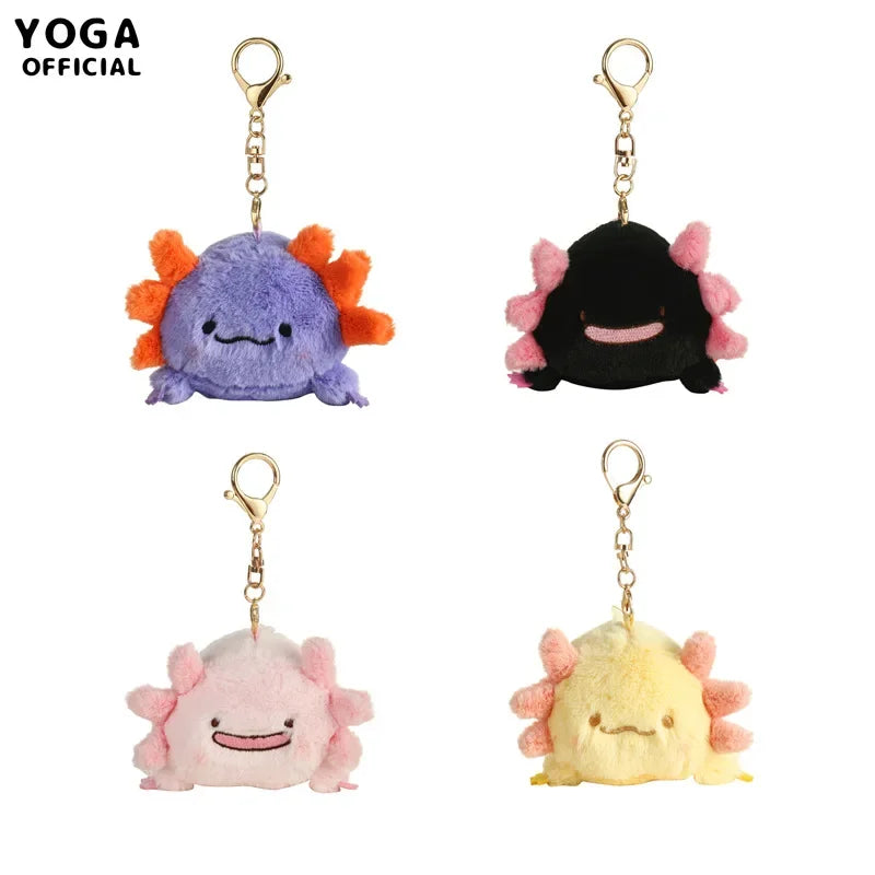 This itty-bitty plush is about half the length of a real axolotl, coming in at 3.93 inches tall. It comes in purple, black, yellow, and pink. All four colorways share a plush polyester exterior, and stuffing made from specially treated polypropylene cotton. If your little keychain buddy ever needs to be washed, be sure to use warm water; if it's too hot or too cold, you risk causing shrinkage or fading.