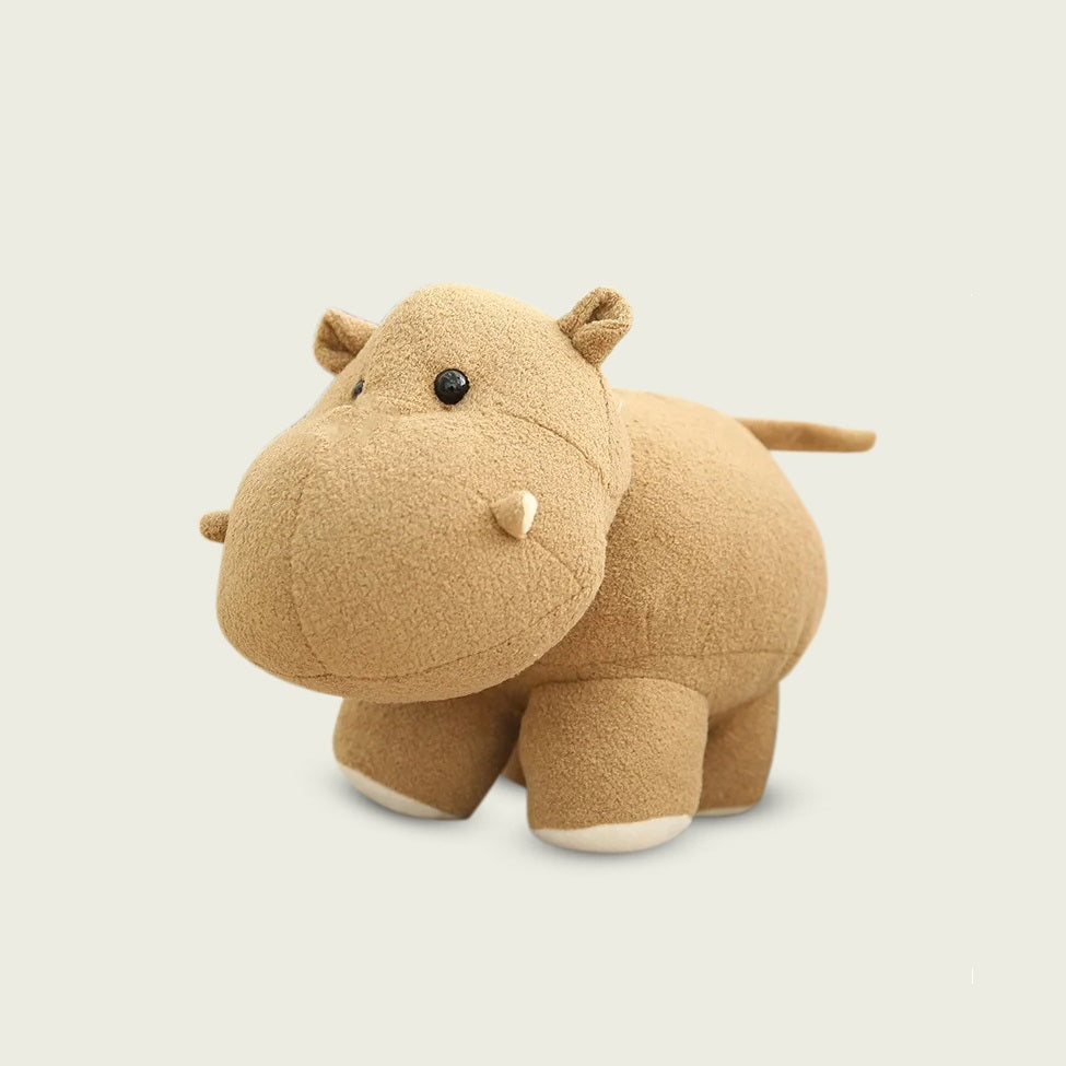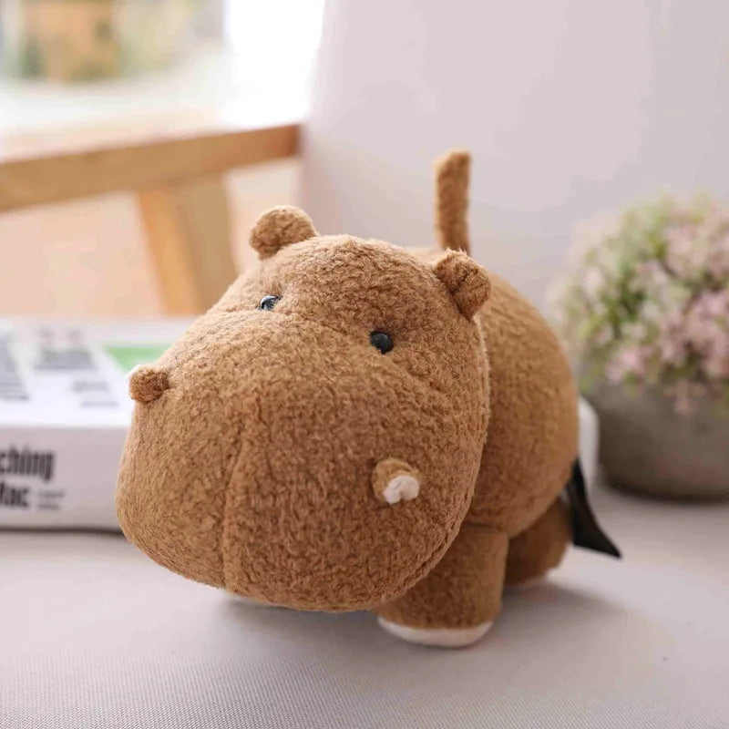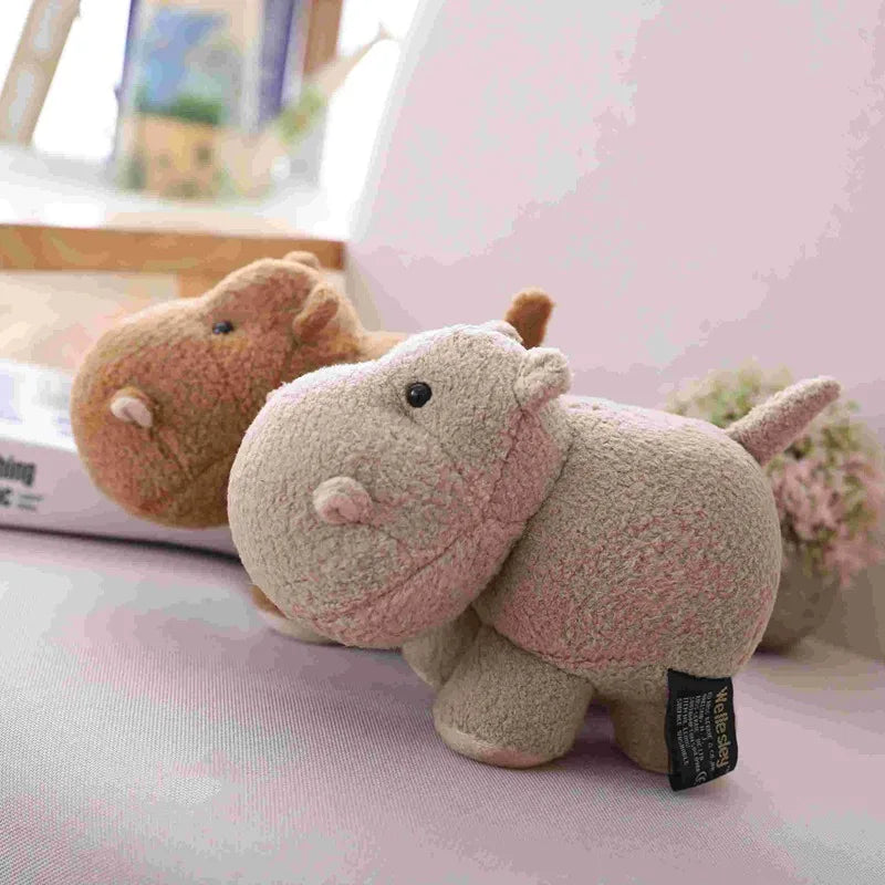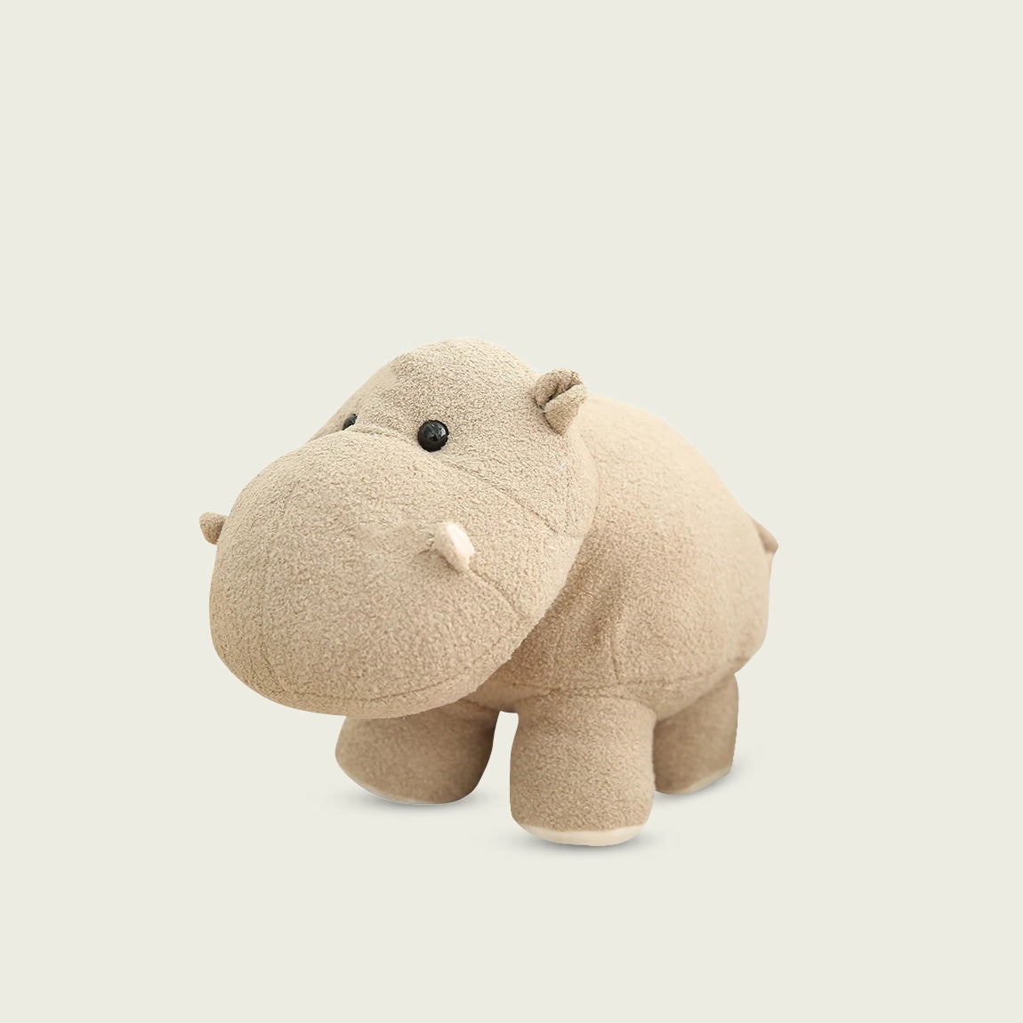 Our delightfully chubby baby hippos come in two colors: a sandy, tan brown and a fuzzy, fleecy gray. Both designs feature humongous, warm smiles to match their wonderfully cuddly personalities, with a cute little tail and cozy muzzle, these baby hippos are sure to stand out from the herd. Each hippo is crafted with careful attention to detail, from their lovable eyes to their rounded, friendly features, making them irresistible buddies for children of all ages.