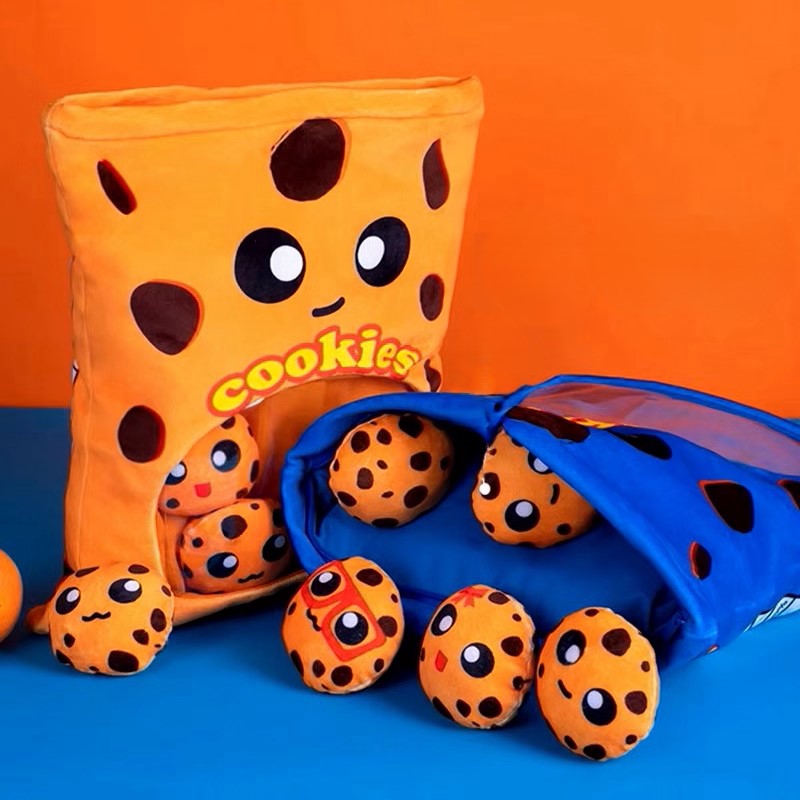 As you walk past the kitchen you notice a familiar comforting aroma. It's a cozy blend of buttery vanilla and chocolate. It's as if the scent is completely filling the room, fully engulfing you with a fragrance that triggers all of your favorite childhood memories. This is the extraordinary power of fresh baked cookies. A core memory set in the minds of many people today. This plushie captures that comfy feeling, and wraps it in a colorful, playful package perfect for children of all ages.