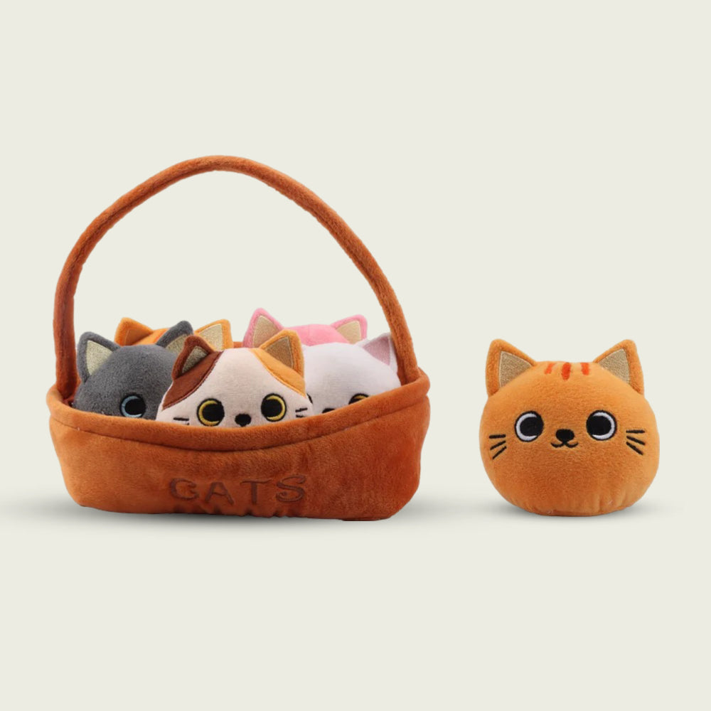 Adopting a whole basket of cats - even in plush form - may seem like a big undertaking, but don't sweat it! Humans have this in the bag. (You, the one reading this, are human, right?) We've been domesticating cats for thousands of years. They were revered as holy in ancient Egyptian society, where beloved cats were often mummified and kept around as statues. This basket isn't quite as macabre, but pretty similar concept, right? Keep the cattitude alive, even if the plushies aren't - and you're bound to feel the sharp zing of the tortoiseshell cat, along with the dopey playfulness of the orange cat, to name a couple.