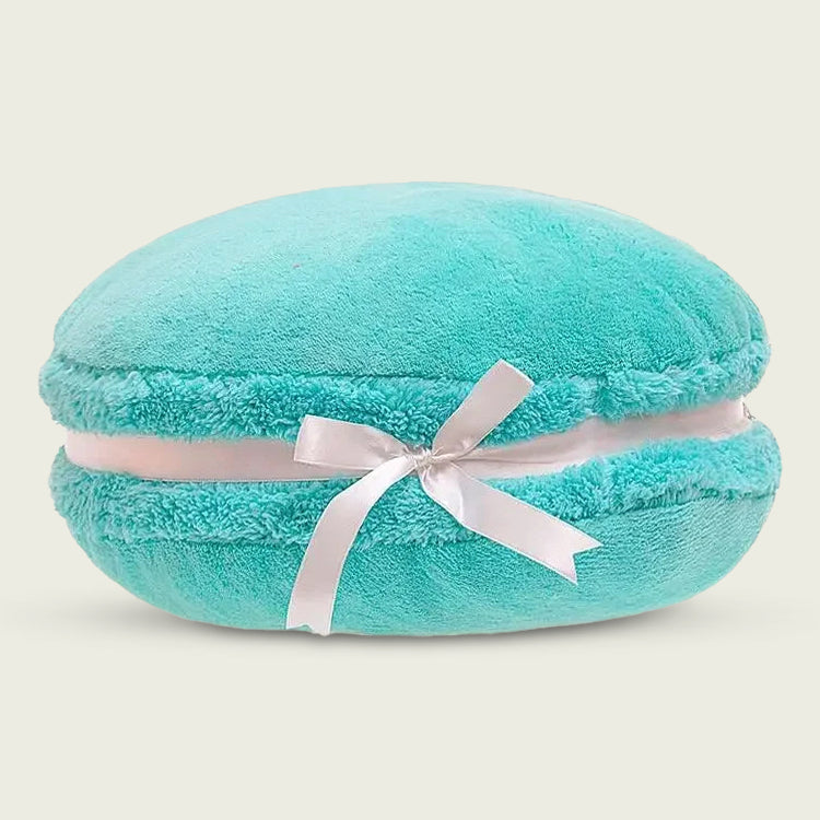 The macaron you'll be getting if you place an order is not baked, but rather sewn. The exterior is made of soft plush polyester, while the inner stuffing is made from a specially treated polypropylene cotton down. Should your blue birthday get a little less blue from dirt or stains, the best thing to do is to give it a gentle scrub with warm water and a mild soap - subjecting this toy to extremes in temperature or handling could result in problems like shrinkage, fading, and even warping.