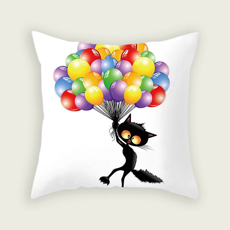 Cat Drifting Away with Colorful Balloons Plush Pillow Case
