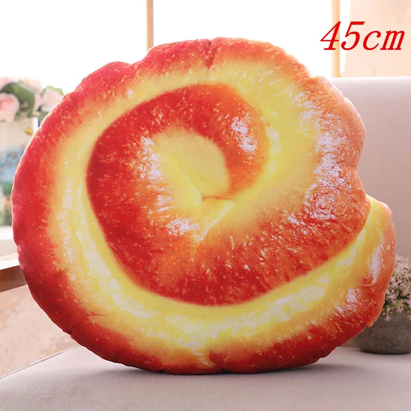 The traditional cinnamon roll in this shop measures up at 17.7 inches in diameter, a fair bit larger than the real deal in most cases. On the outside, you'll find soft plush polyester. On the inside, there's stuffing made of polypropylene cotton down. Warm water and mild soap should be used for cleaning, as a machine cycle may cause shrinkage, fading, and other problems.
