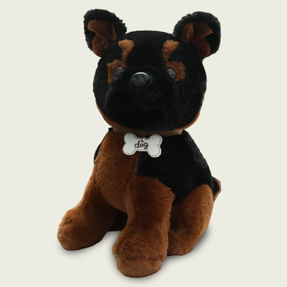 Meet Eddie, your loyal German Shepherd Puppy Plushie. Eddie is a true embodiment of the German Shepherd; intelligent, brave and unwaveringly loyal. Eddie sports a stunningly rich brown and black patterned soft plush polyester fur, and bold brown markings around his kind eyes. With his pointed, alert ears, Eddie loves to imagine himself as a courageous protector, ready to offer comfort and security at the drop of a hat.