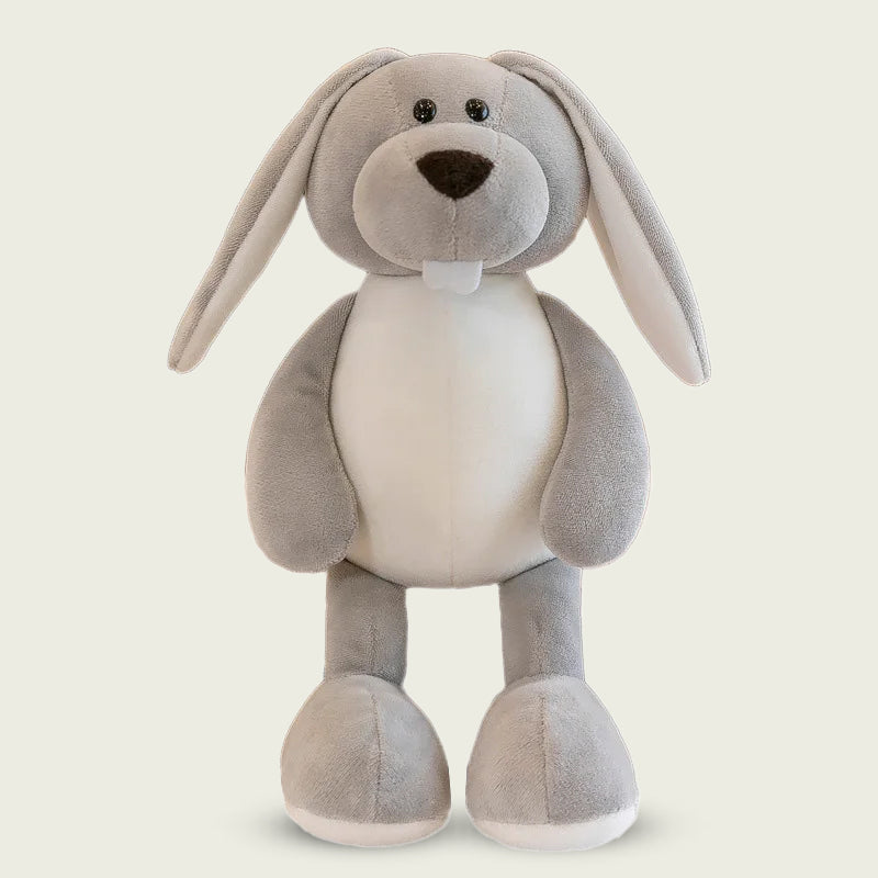 This little rabbit is larger than the average pygmy hare, measuring about 10.2 inches long. His fur is extra-soft, much like a real bunny, thanks to a soft polyester covering. His stuffing, meanwhile, is made of a specially treated polypropylene cotton down. If you overdo it hugging this squishy little guy and get him dirty, a quick wash with warm water is all he needs; just avoid using hot or cold water so that he doesn't fade or shrink.
