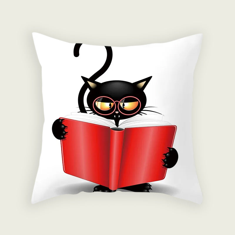 Intellectual Cat Reading Plush Pillow Case