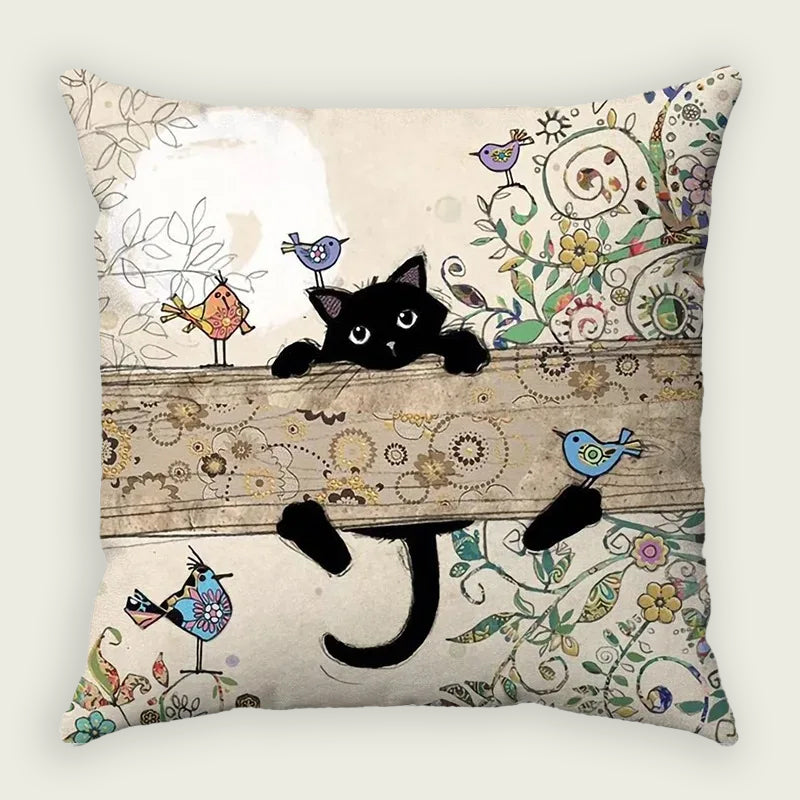 The classic "hang in there" poster has been given a rustic coat of paint for our all-new Mischievous Kitten Outdoors Plush Pillow Case! This little kitty exploring the birds' territory brings a touch of playful charm to a design that's bursting with color and giving a variety of vibes. The pillow cover is soft and durable, and can go over your existing square pillows, or be stuffed with whatever you like. Whether you want a dash of quirkiness, some country flair, or a simple pop of color, this case can bring life to your space!