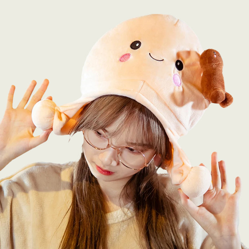 So if you're a phallic form lover or if you have a friend that would love a dick gag gift, this penis hat plushie beanie is the perfect product for you!