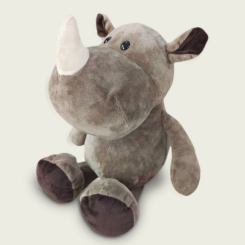 The plush that will adorn your shelf, or perhaps share your bed or couch with you, stands at only 10.2 inches, not even ankle height to a real rhino, but much more manageable as a result. This portable pal has a plush cover made of polyester, over soft and squishy polypropylene cotton down. The premium materials do require just a bit of care; be vigilant with washing your new friend when needed, and don't let him near water that's too hot or too cold.