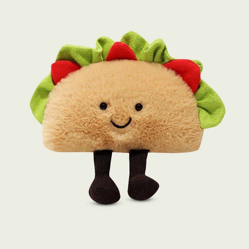 The Snack Squad fired off a real bombshell this time; introducing Taco Torpedo! Exploding onto the scene and packed with a blast of flavor, this tiny taco is ready to amp up your day in the most playful way. Behind that innocent smile on a plain tortilla, you'll find a burst of flavor and color so powerful that even a glimpse of it may just be too much for mere mortals - good thing that shell is fully intact! Unlike a real taco, this one won't fall apart on you, so feel free to pick it up and give it a hug. In fact, that kind of behavior is explicitly encouraged, 'cuz this soft taco is way silkier and squishier than anything you can get from behind a fast food counter. Coming in clutch with a mini-me along for the ride, this taco satisfies, no matter the size. 🌮
